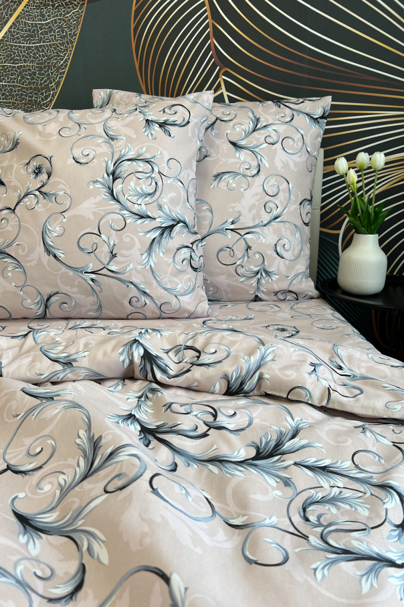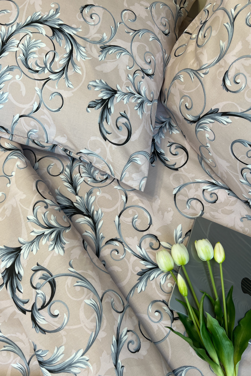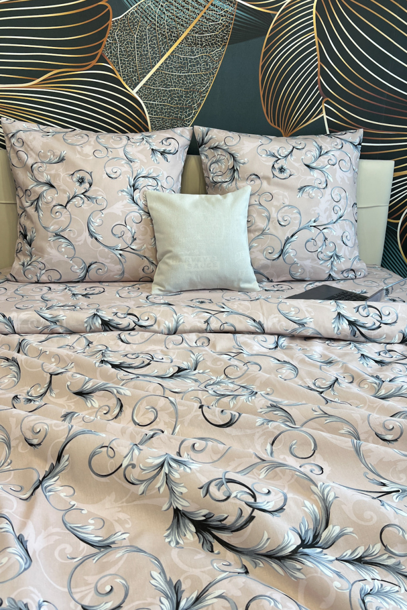 Комплект постельного белья изготавливается из бязи, ткани из качественного 100% хлопка. Бязь - ткань из натуральных волокон, обладающих замечательными свойствами - воздухопроницаемость, гигроскопичность. Плотность ткани 120 (+/- 5) гр/м2. Постельное белье из бязи легко стирать и быстро гладить. Легкий, мягкий и одновременно прочный материал великолепно подходит для постельного белья среднего ценового сегмента.