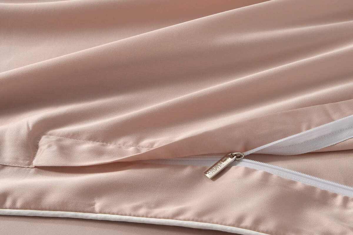 Для нашего фирменного постельного белья Elizabeth мы используем 100% тенсель (эвкалиптовое волокно) пряжи 60s, сатиновое плетение плотностью 300ТС. Комплект выполнен в однотонном дизайне с изящным белым кантом по краю пододеяльника и наволочек.
