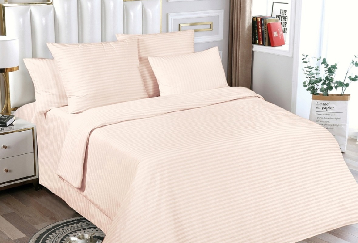 Комплект выполнен из ткани поплин плотностью 110-115 г/кв.м, 100% хлопок, благодаря рисунку полоса, комплект прекрасно подойдет под любой интерьер