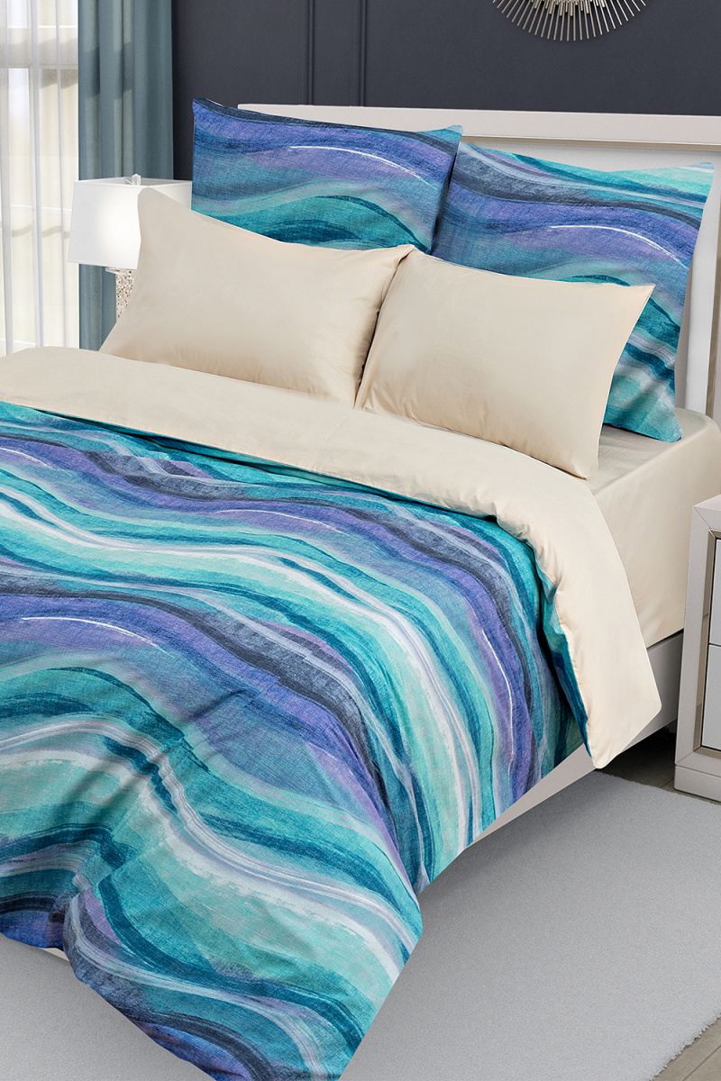 Постельное белье выполнено из сатина высокой плотности (пряжа 40х40) с пигментным окрашиванием. Ткань шелковистая, очень приятная на ощупь. Пододеяльник и наволочки сшиты из основной ткани, простынь и обратная сторона пододеяльника выполнены из ткани-компаньона.