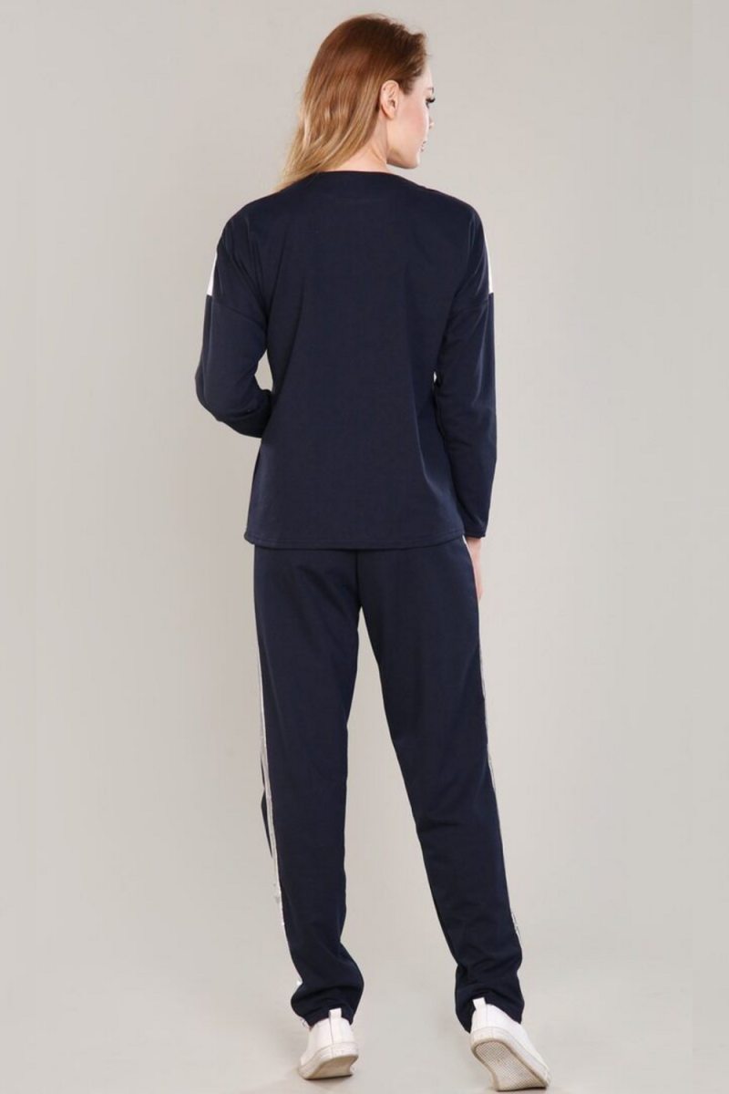 Комплект включает уютный джемпер с заниженной линией плеча, украшенный изящным растительным принтом, и удобные брюки с поясом на резинке и боковыми карманами, дополненные стильными боковыми полосками. Свободный крой подходит для любого типа фигуры и отлично подходит для спорта, отдыха или повседневной носки.