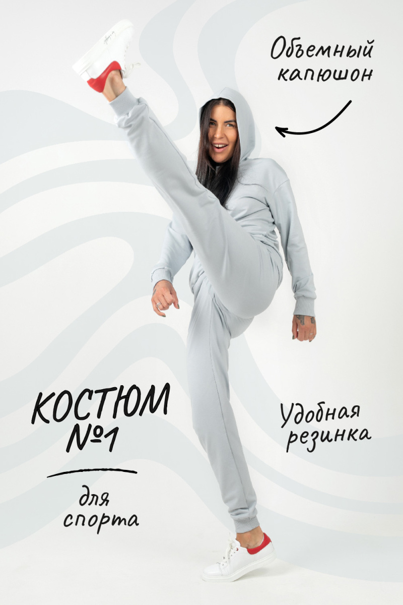 Женский спортивный костюм с капюшоном - практичный образ как на каждый день, так и для поездок и активного отдыха. Верх - худи оверсайз, низ - брюки джоггеры с высокой посадкой. Костюм спортивный женский выполнен из футера высокого качества 2-х нитки без начеса (производство Турция). Костюм для высоких, костюм для беременных, для йоги, костюм для прогулок. Футер - натуральный хлопок с небольшим количеством полиэстера для поддержания формы и эластичности изделия. Дышащий, мягкий и комфортный костюм спортшик благодаря своему натуральному составу ткани, прекрасно подходит как для теплой, так и для прохладной погоды. Выбирая этот базовый спортивный костюм, Вы получаете универсальный стильный худи оверсайз с карманом кенгуру, который можно сочетать с джинсами и юбками, а так же удобные, стильные брюки джоггеры. Карман кенгуру на худи обработан закрепочными строчками.