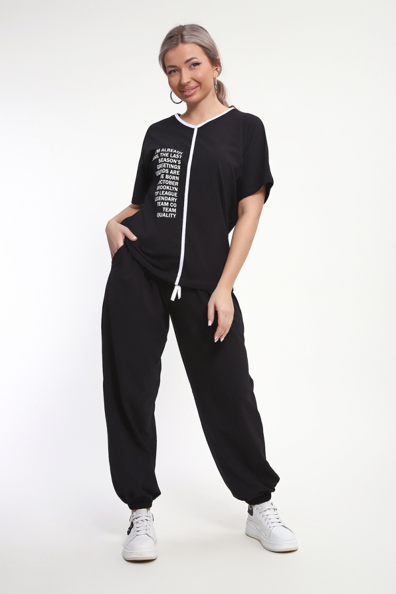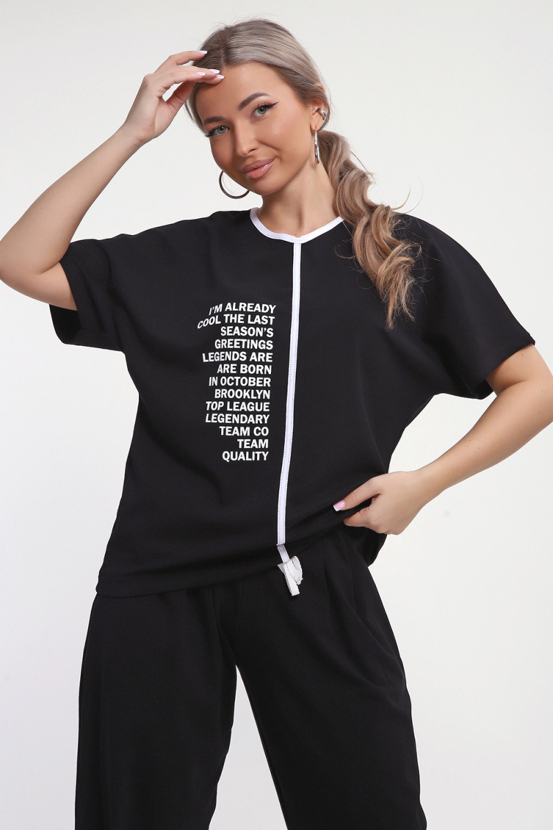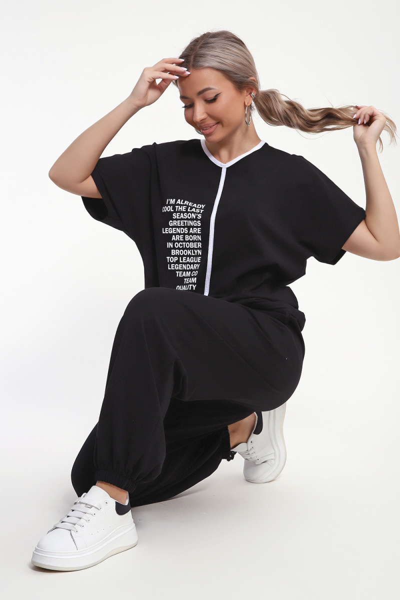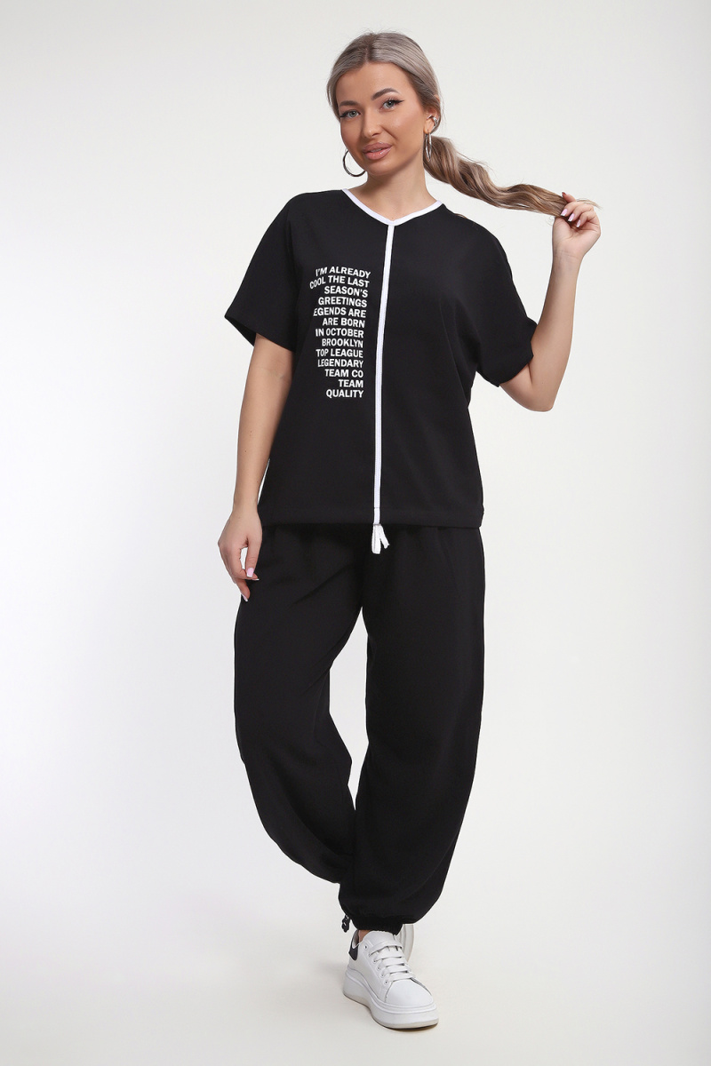 Модный, красивый и удобный костюмчик с брюками Алладинами. Костюм состоит из футболки и брюк. Рукав на футболке спущенный. На полочке принт в виде надписи, горловина обработана отбелочной тканью, по центру полочки отделочная тесьма. Низ у футболки на кулиске со шнурком, который регулируется по талии. Брюки алладины с мягкой широкой резинкой на талии и по низу изделия, свободного кроя со складочками спереди и карманами. Этот костюм станет отличным выбором для прогулок, встреч с друзьями или просто для комфортного отдыха дома!