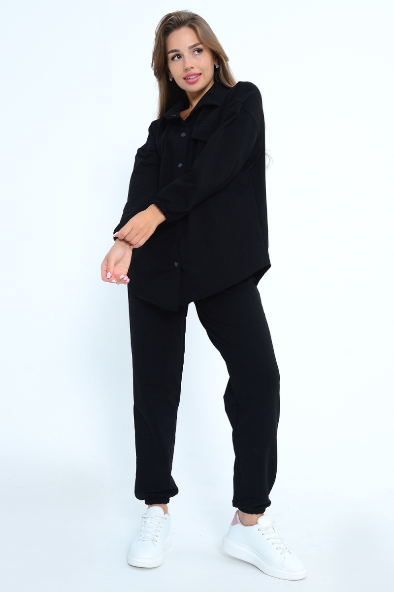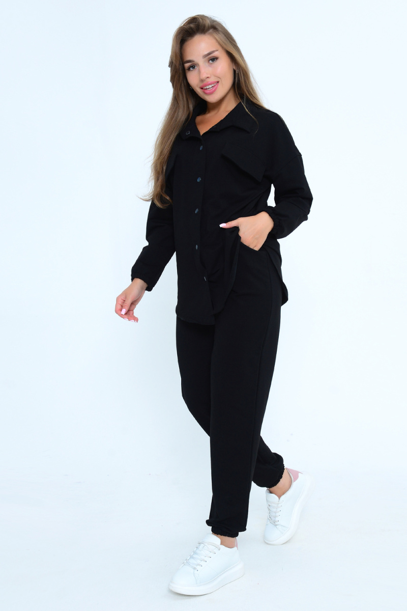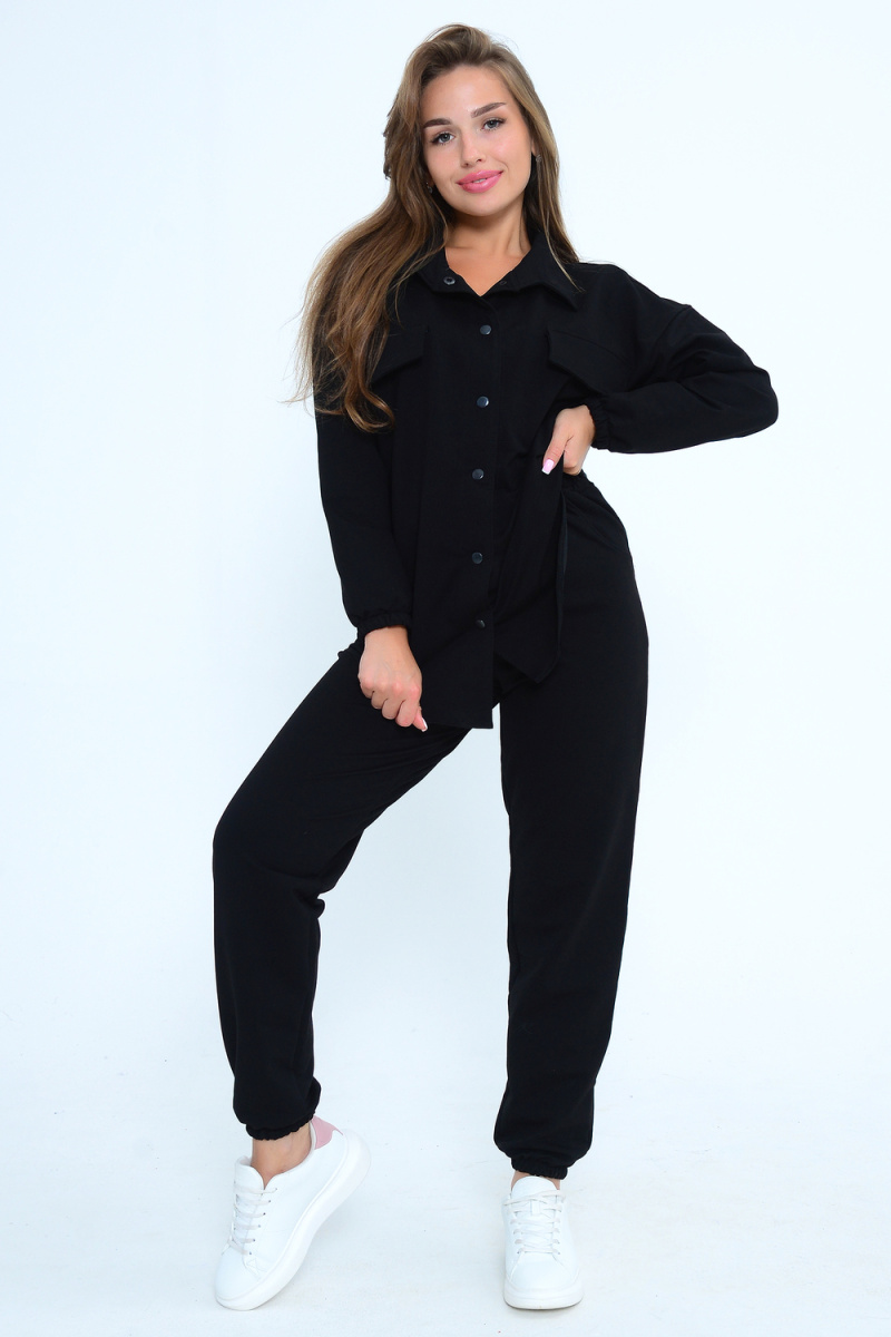 Стильный женский костюм. Рубашка на клепках и джоггеры на резинке. Костюм изготовлен из качественного футера 2-х нитки, ткань приятная к телу и практичная в носке. Незаменимая вещь в гардеробе каждой модницы! Удобный крой, модель оверсайз, благодаря чему костюм совершенно не сковывая движения. Костюм можно приобрести для себя, но также он будет отличным подарком для подруги или мамы. Стань самой модной и привлекательной в современном образе от бренда "Ландыш"