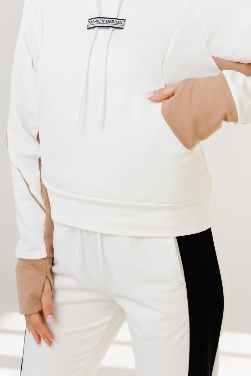 Спортивный костюм с капюшоном от российского производителя бренда женской одежды! Костюм двойка женский состоит из кофты и брюк джогеров. Верх костюма представлен кофтой с длинными рукавами и капюшоном, по спинке и рукавам имеется отделочный кант. На кофте имеются карман кенгуру и вставка другого цвета на рукавах. Низ комплекта представлен в виде брюк на резинке с прорезными карманами и двумя цветными лампасами. Классический спортивный комплект идеален для спорта, отпуска, будет незаменим в поездках на отдыхе или командировке. Универсальность модели позволяет носить костюм как в теплые весенний и летний сезоны, так и в холодное время года осень зима. Этот женский спортивный костюм оверсайз идеально подходит для повседневной носки и активного отдыха. Он выполнен из теплого материала, что делает его отличным выбором для весны. Брючный вариант обеспечивает комфорт и свободу движений, а стильный дизайн добавляет нотку спорт шика в ваш образ. Базовая модель на каждый день подойдет как женщинам невысокого и средне