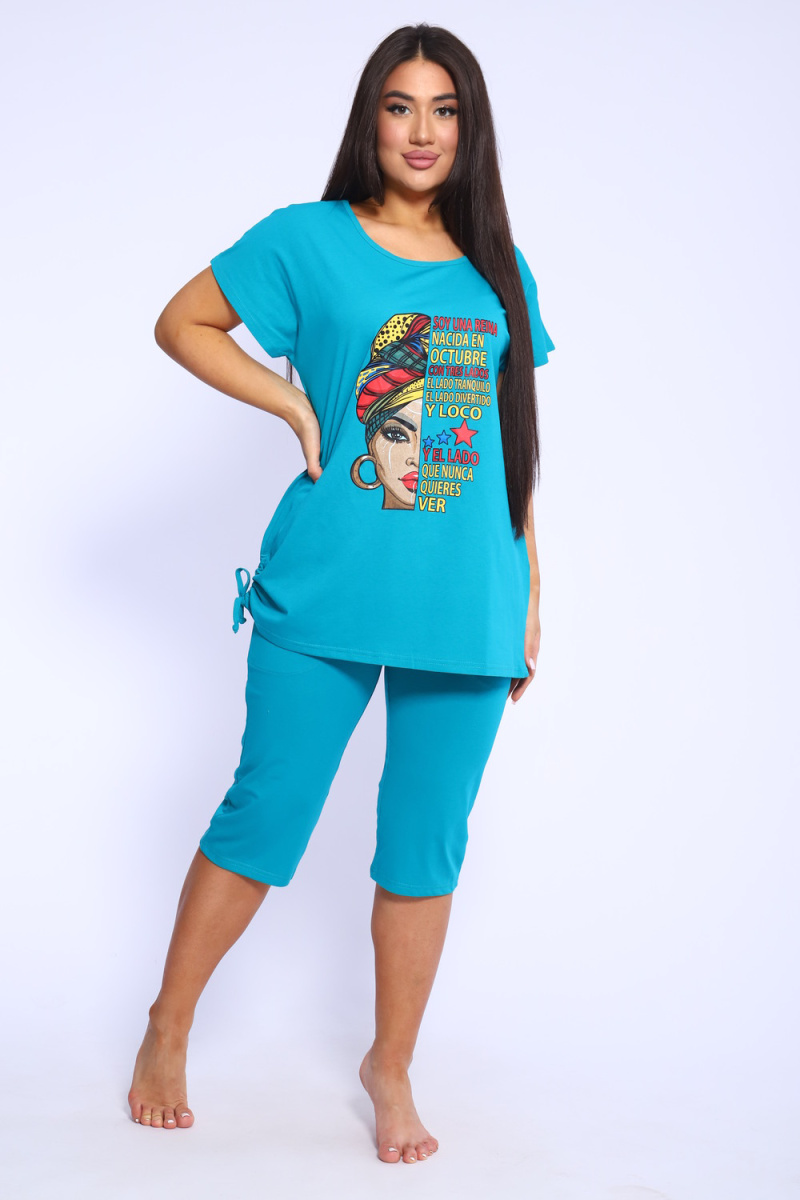 Представляем вашему вниманию женский домашний спортивный костюм, который идеально подходит для комфортного времяпрепровождения дома и на даче. Этот комплект включает в себя удобную футболку и стильные бриджи, которые глубоко заботятся о вашем комфорте. Изготовленный из мягкого и дышащего материала, он отлично подходит для расслабления и активного отдыха. Футболка обладает лаконичным дизайном, что добавляет универсальности, а бриджи прекрасно сочетаются с ней, создавая непринужденный ансамбль. Такой набор станет идеальным выбором в качестве домашней пижамы, позволяя вам чувствовать себя уютно и привлекательно.