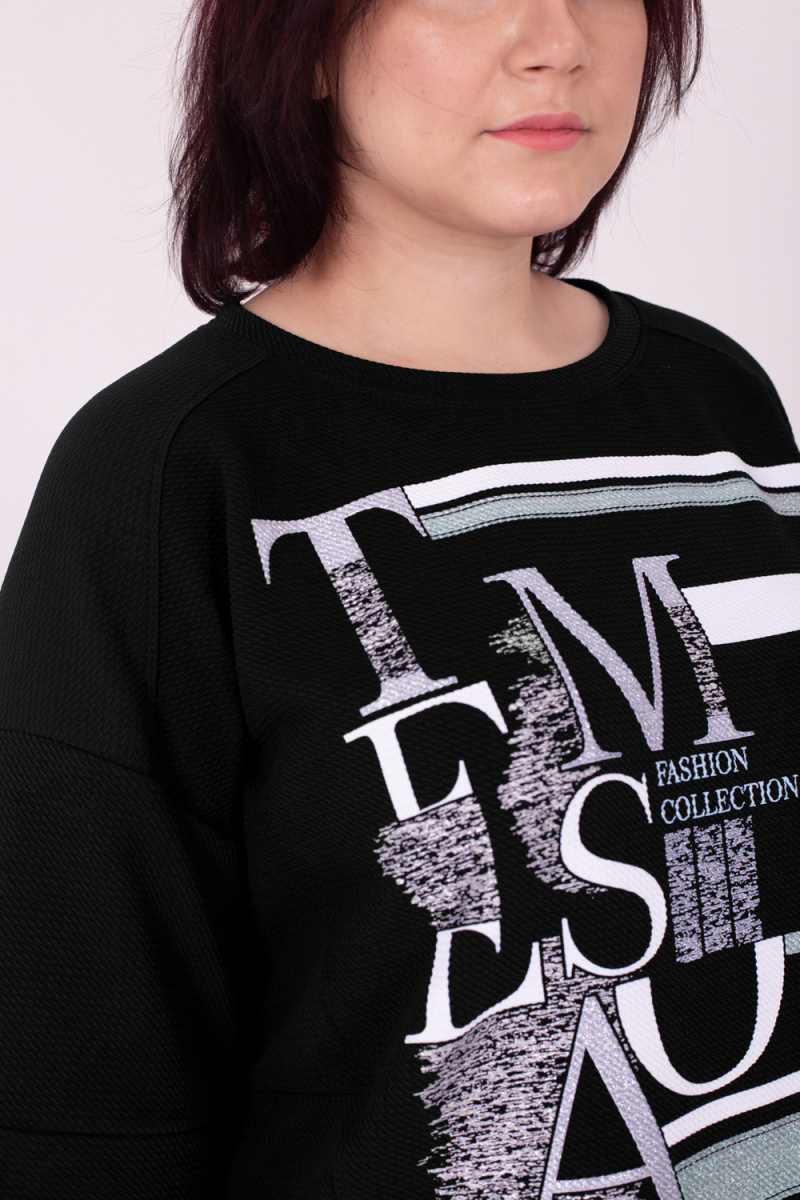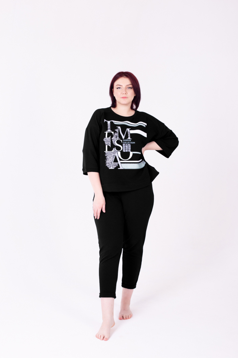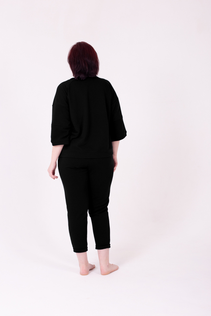 Костюм женский с брюками на резинке и свободной кофтой с рукавами 3/4. Модель выполнена из качественного футера 2-х нитки.