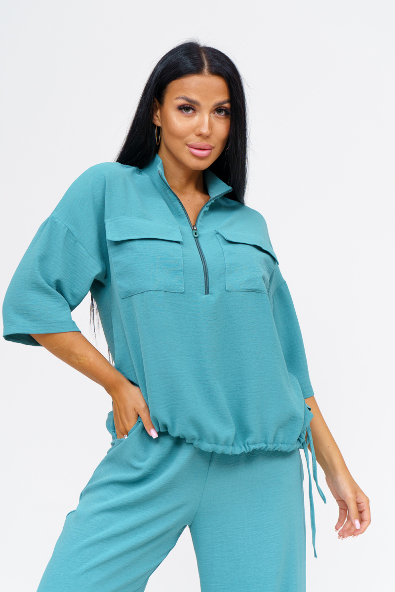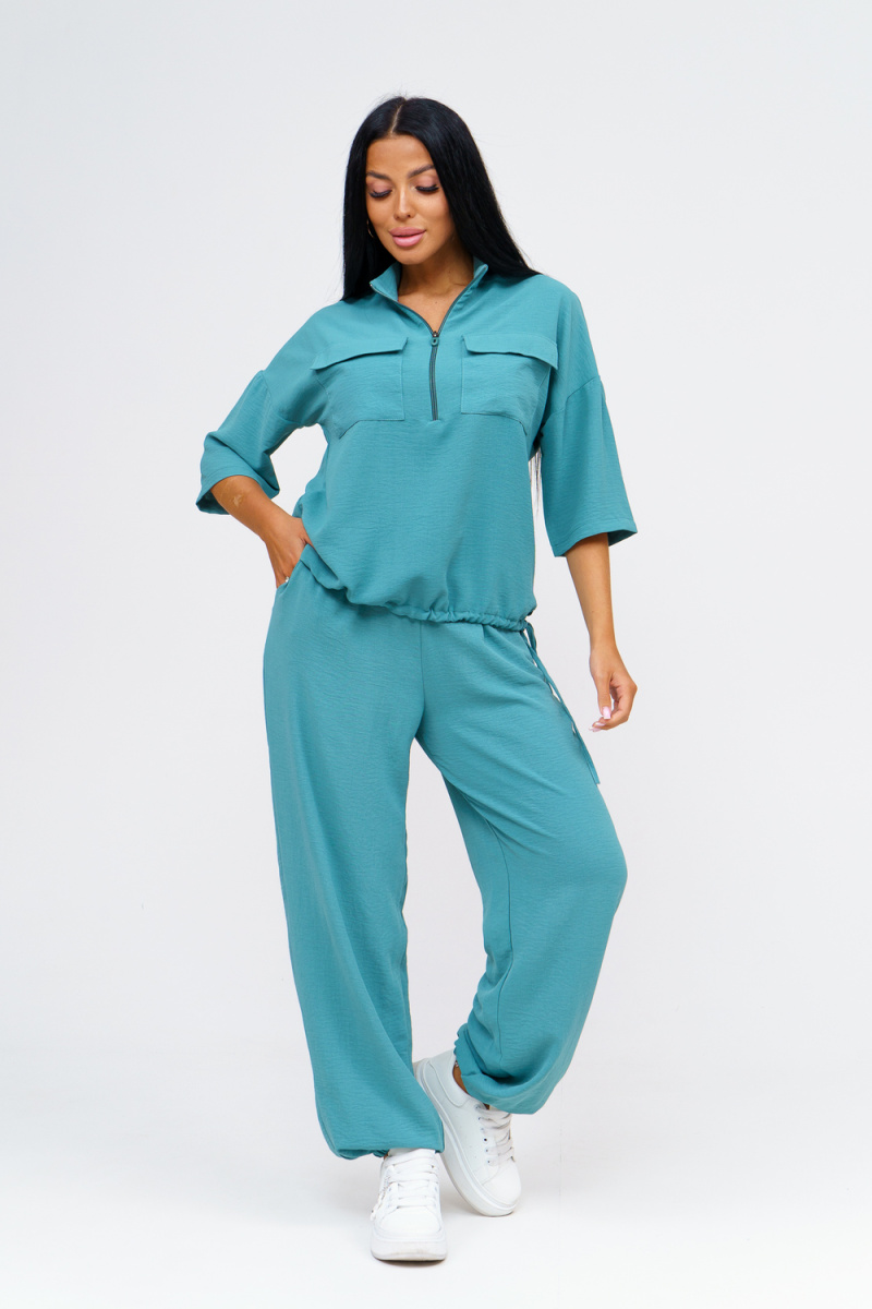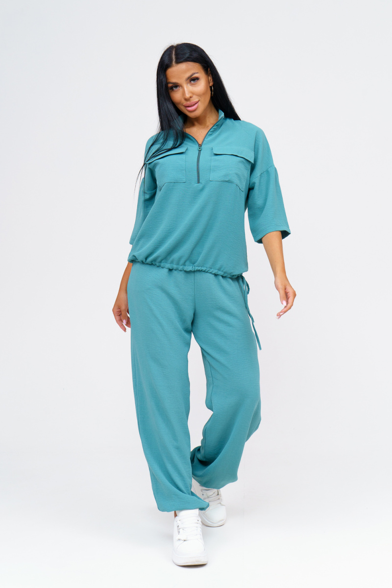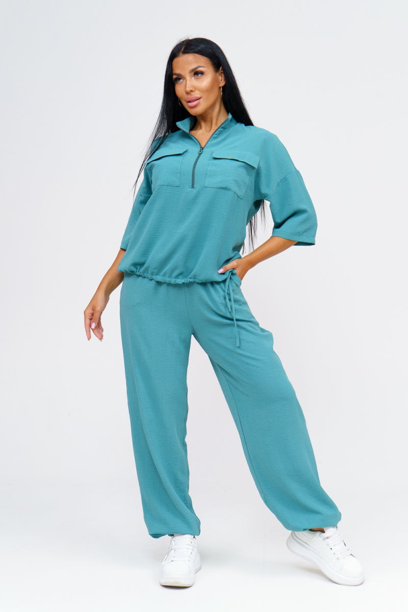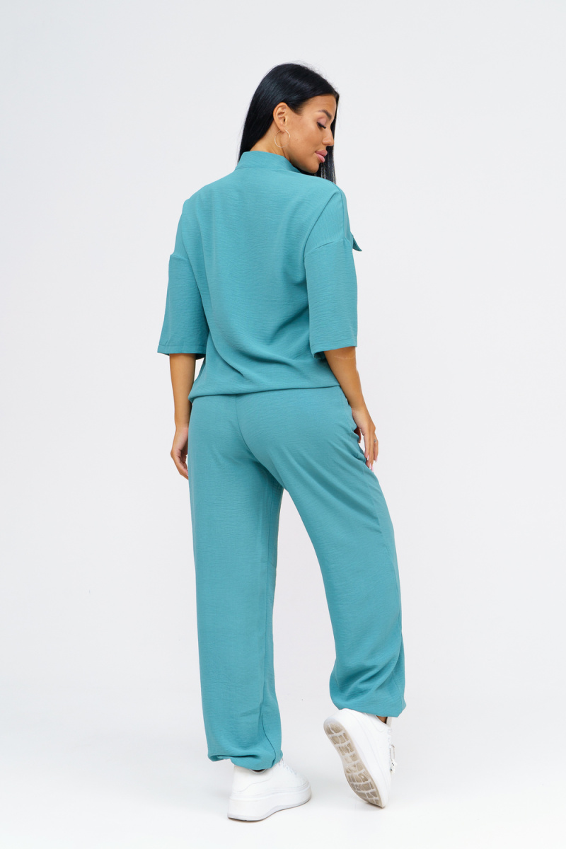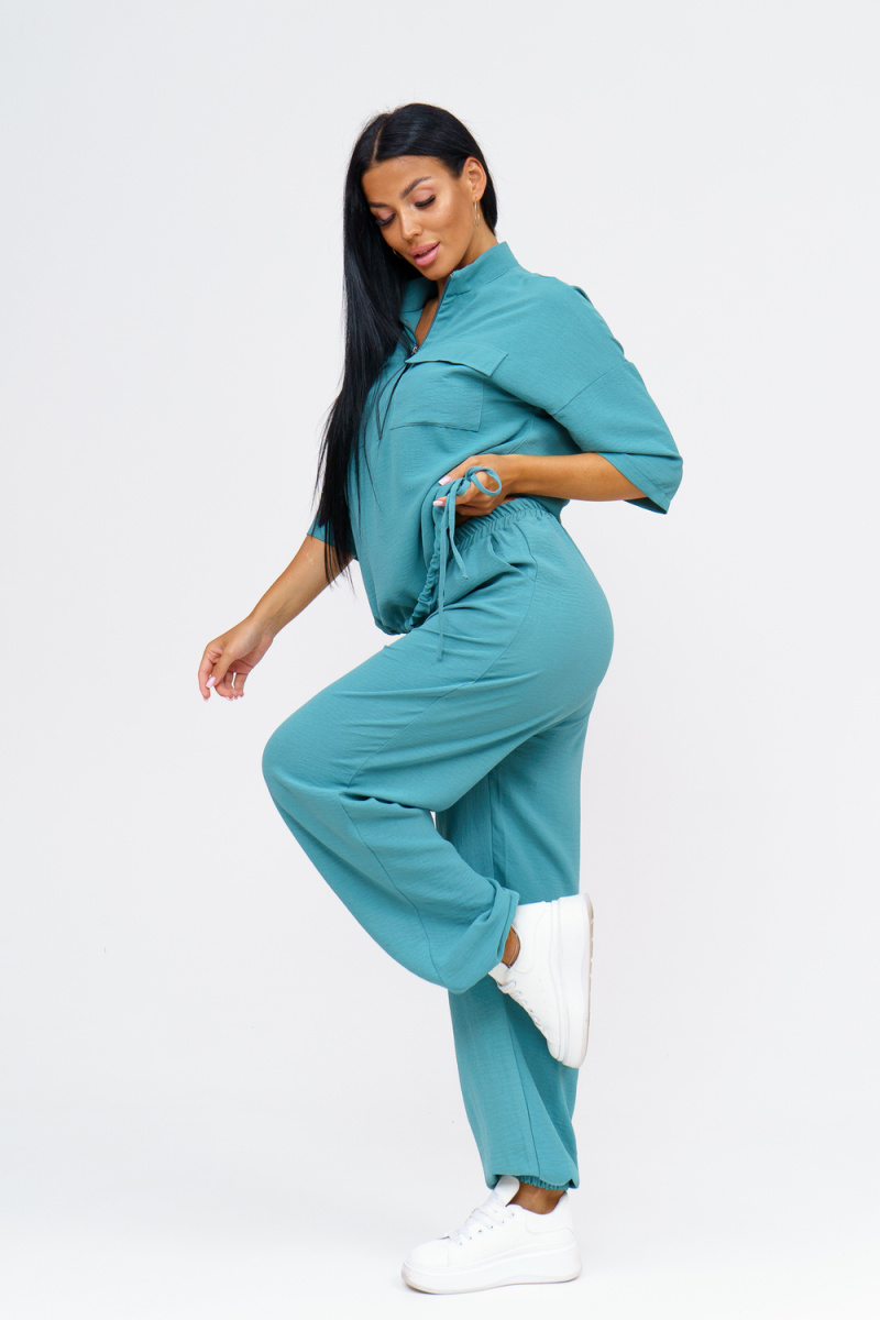 Встречайте безупречное сочетание элегантности и комфорта в новом костюме женском брючном. Стильный комплект идеально подчёркивает вашу индивидуальность и подходит для разнообразных случаев, будь то работа, деловая встреча или романтический вечер. Исполненный в чарующем бирюзовом цвете, он придаёт образу свежести и лёгкости, акцентируя внимание на вашем изысканном вкусе. Брючный костюм женский летний создан из мягкой, дышащей ткани, что обеспечивает комфорт даже в жаркую погоду. Превосходный крой и продуманные детали делают его идеальным выбором для тех, кто ценит качество и утончённый стиль. Дизайнеры предусмотрели все особенности конструктивного покроя, чтобы костюм женский классический садился по фигуре, подчёркивая её достоинства и грациозно скрывая недостатки. Брюки имеют удобную посадку и идеально сочетаются с блузками и топами, что позволяет вам легко создавать разнообразные образы на каждый день. Туника, входящая в комплект, обладает элегантным фасоном и дополнен изысканными деталями. Брючный костюм же