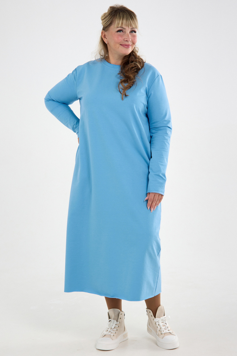 Платье повседневное трикотажное оверсайз. Женское платье, которое сочетает в себе комфорт, стиль и уникальность. Платье женское осень. Идеальный выбор для создания стильного и уютного образа.Это платье изготовлено из плотной, высококачественной и дышащей хлопковой ткани- футер 2-х нитка, что обеспечивает приятное ощущение на коже и комфорт в течение всего дня. Платье выполнено в прямом крое и имеет макси длину, что придает ему элегантность и утонченность. Трендовый вид товару придает округлый вырез горловины и длинные рукава. Необработанные края придают изделию особый стиль и эстетическую привлекательность. Необработанный край такой же прочный и стойкий к стирке и износу, как обработанный и отстроченный край. Не подвержен разрушению и сохраняет свою структуру и форму даже после многочисленных стирок. Платье позволяет подчеркнуть женственные формы и при этом не сковывает движения. Благодаря свободному крою, платье подходит для различных фигур и создает элегантный силуэт. Отлично держит форму при носке, не ска